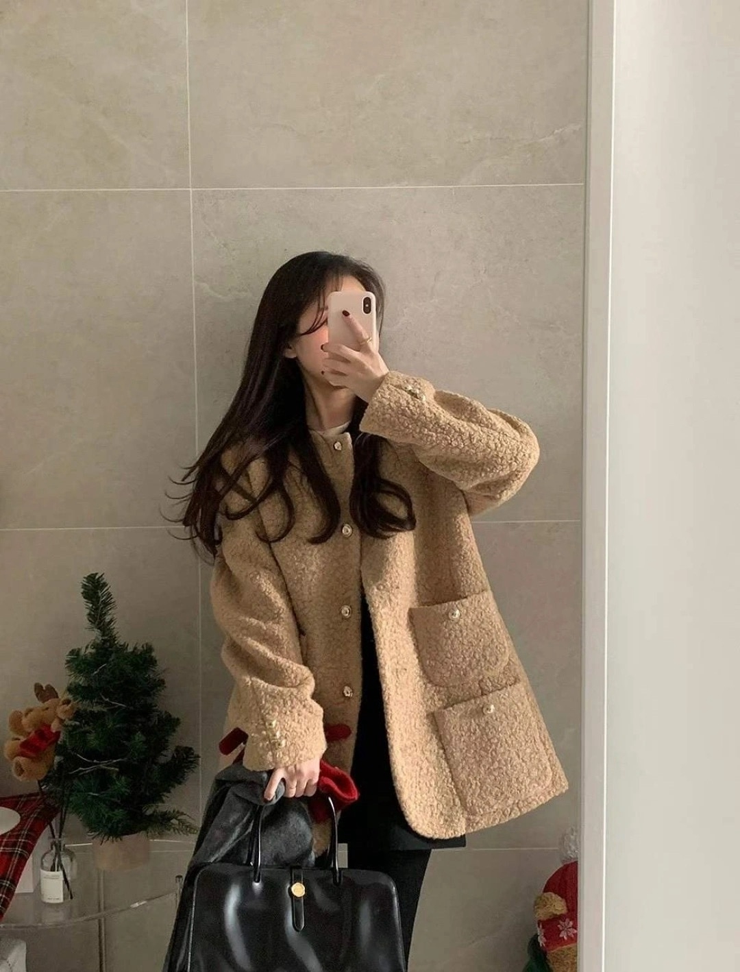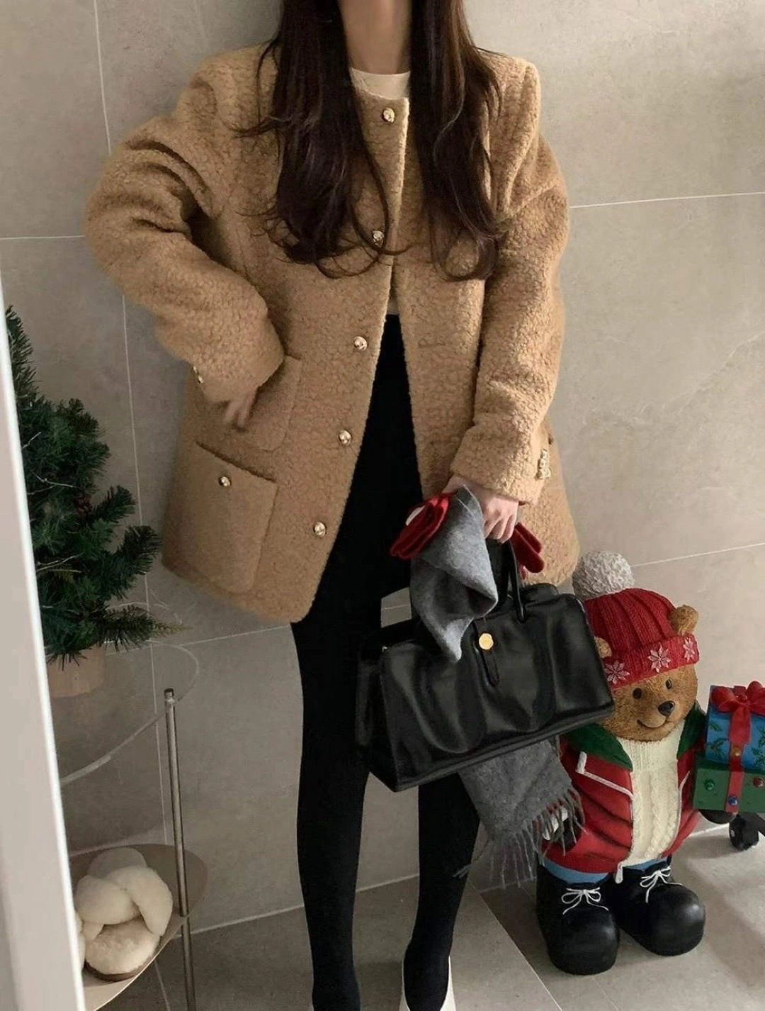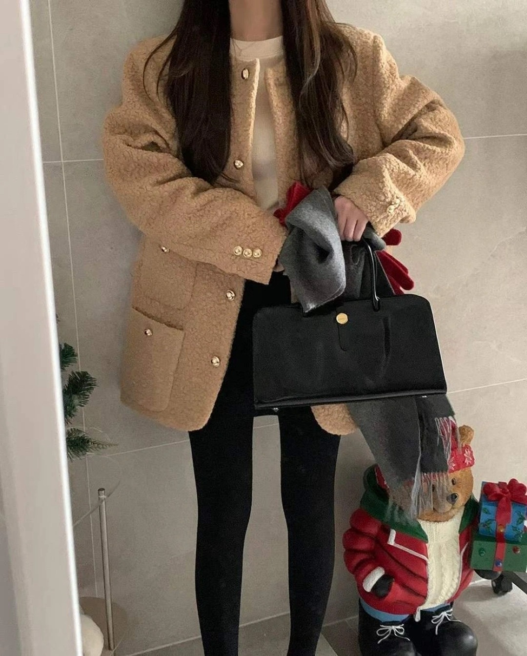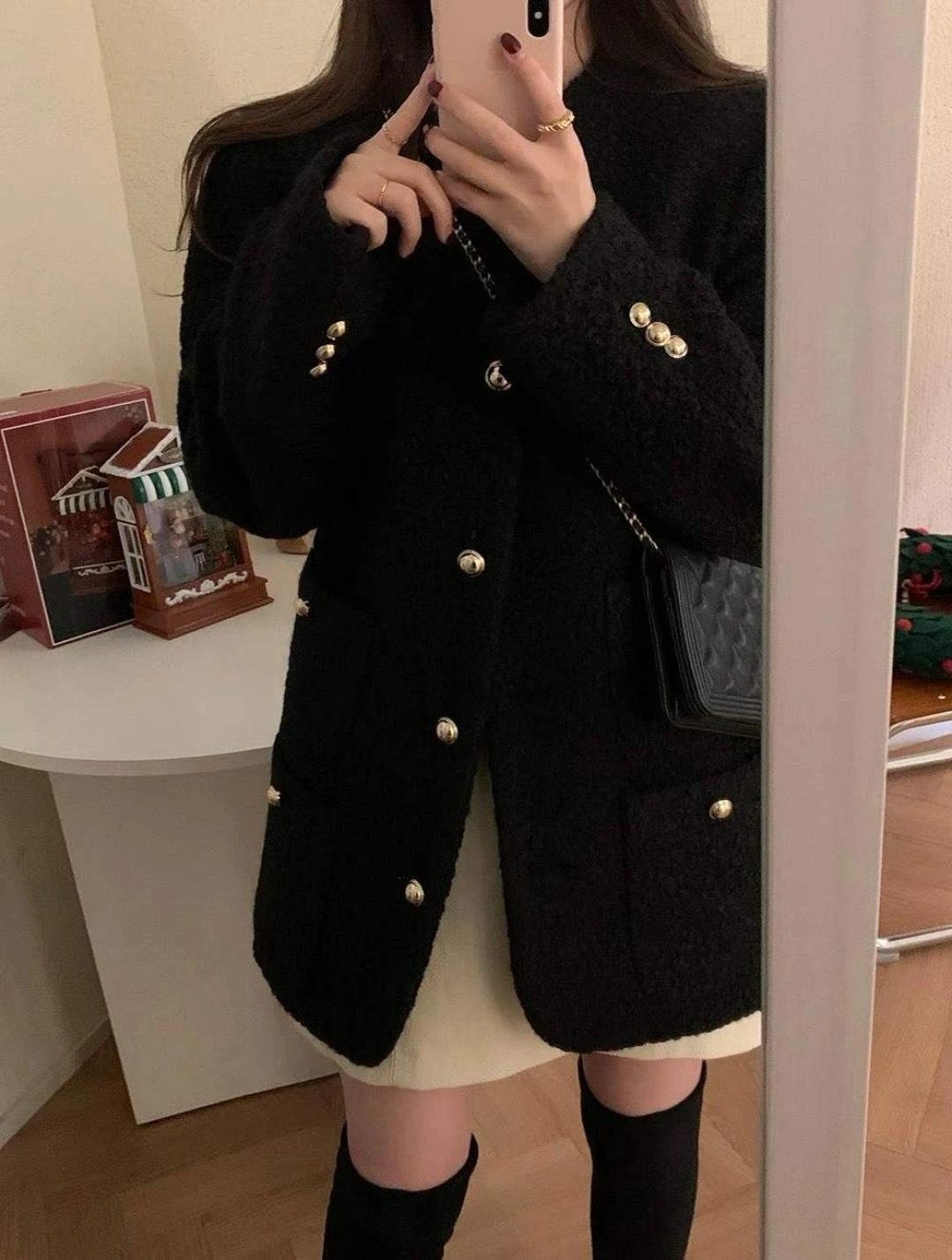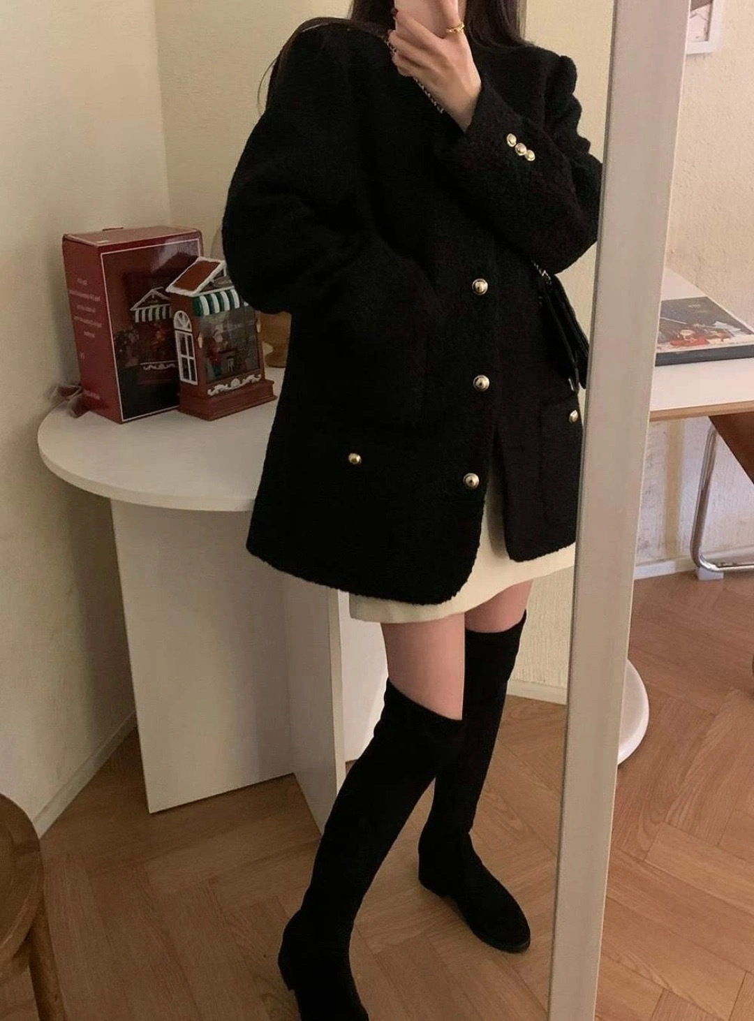 可高領簡約西裝版型手工羊毛外套(羊毛80%)