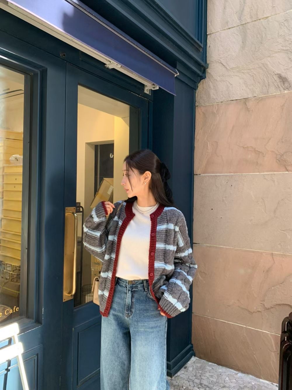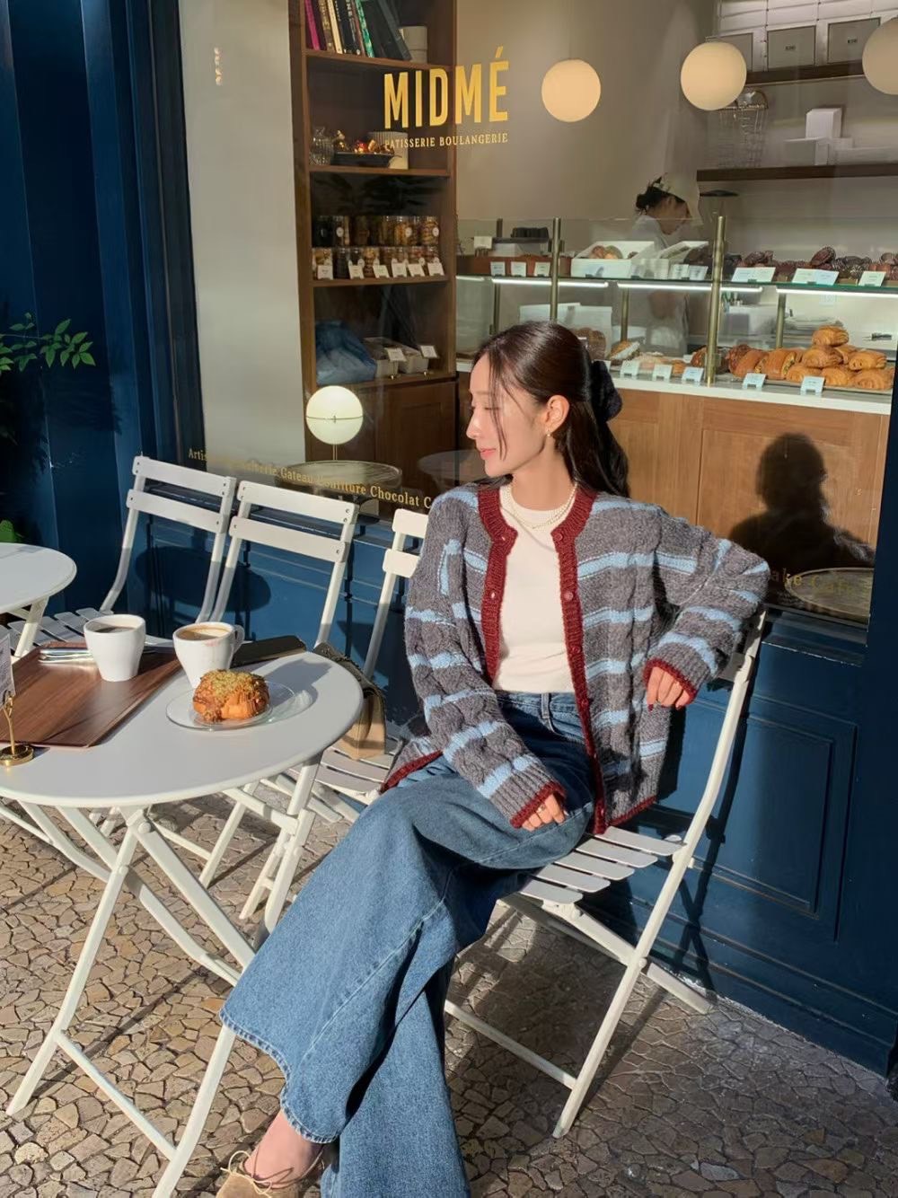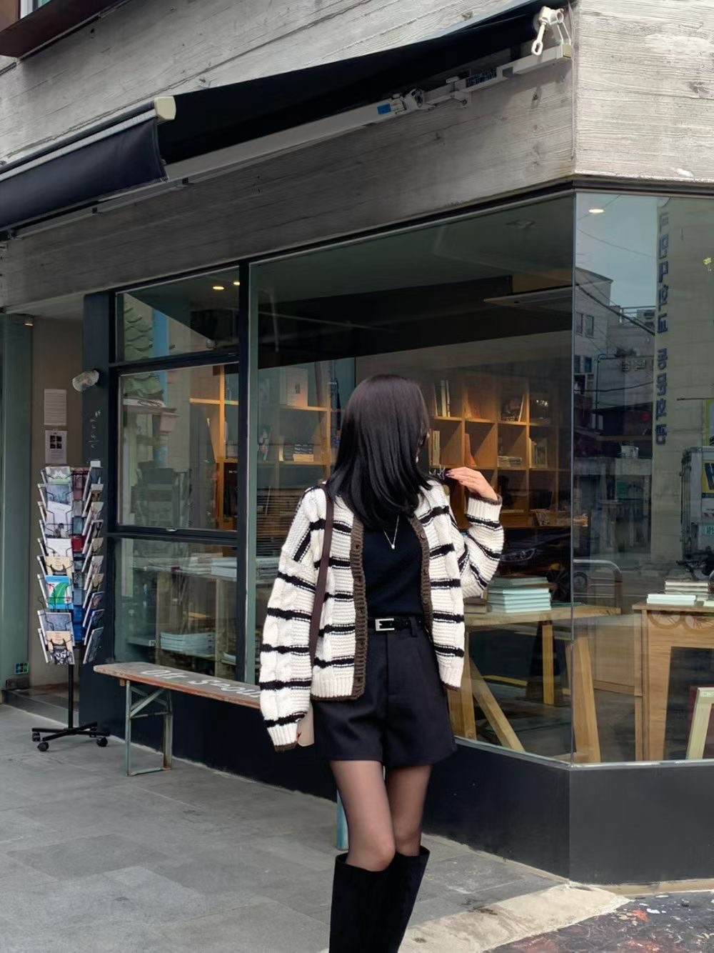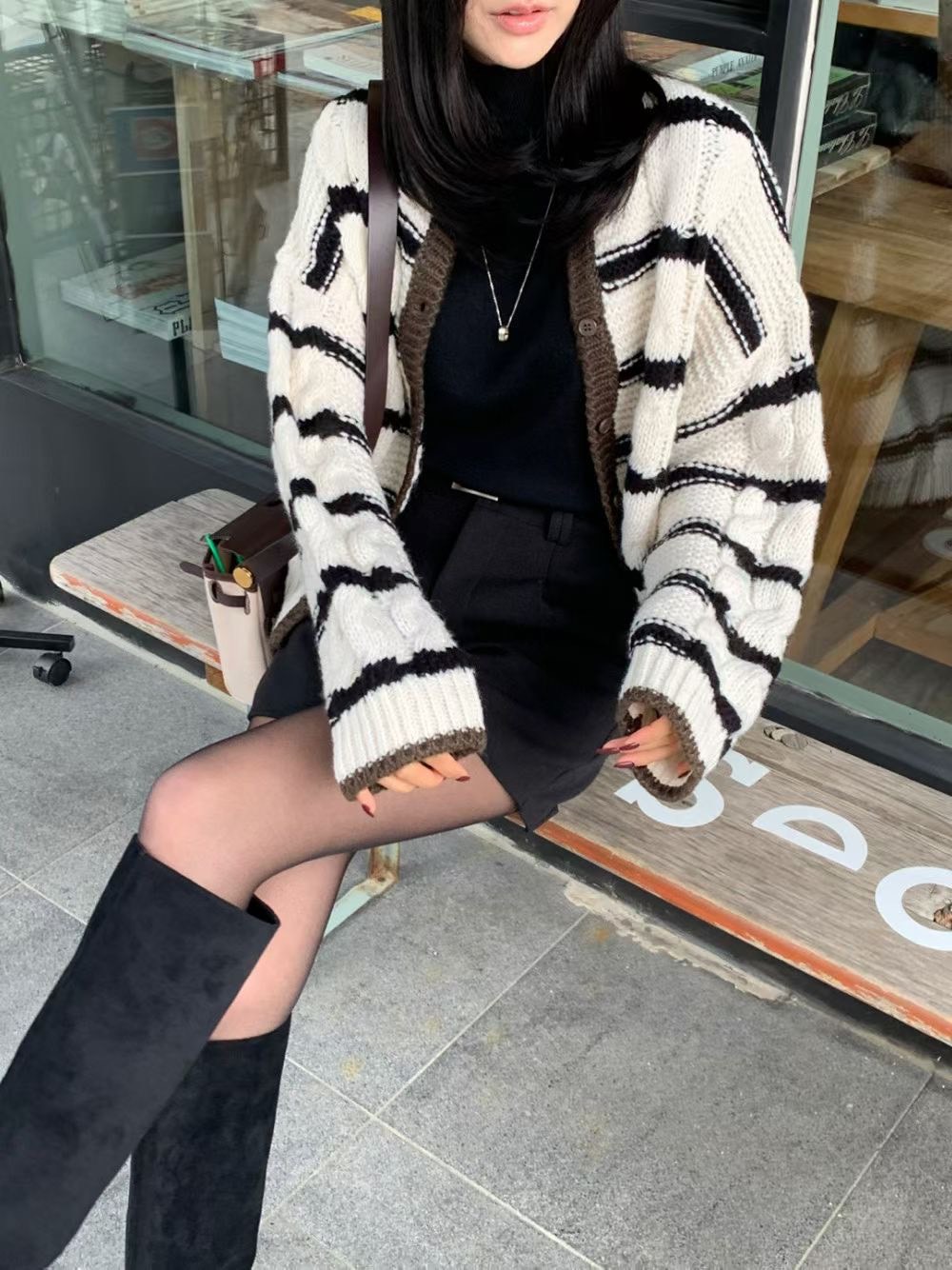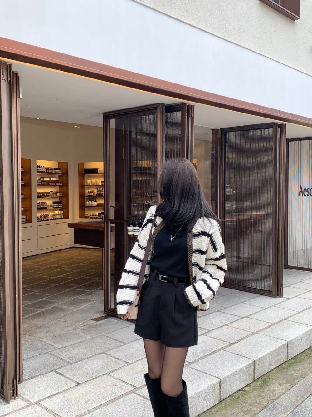 短毛圓領排釦針織衫+鬆緊A字短裙SET