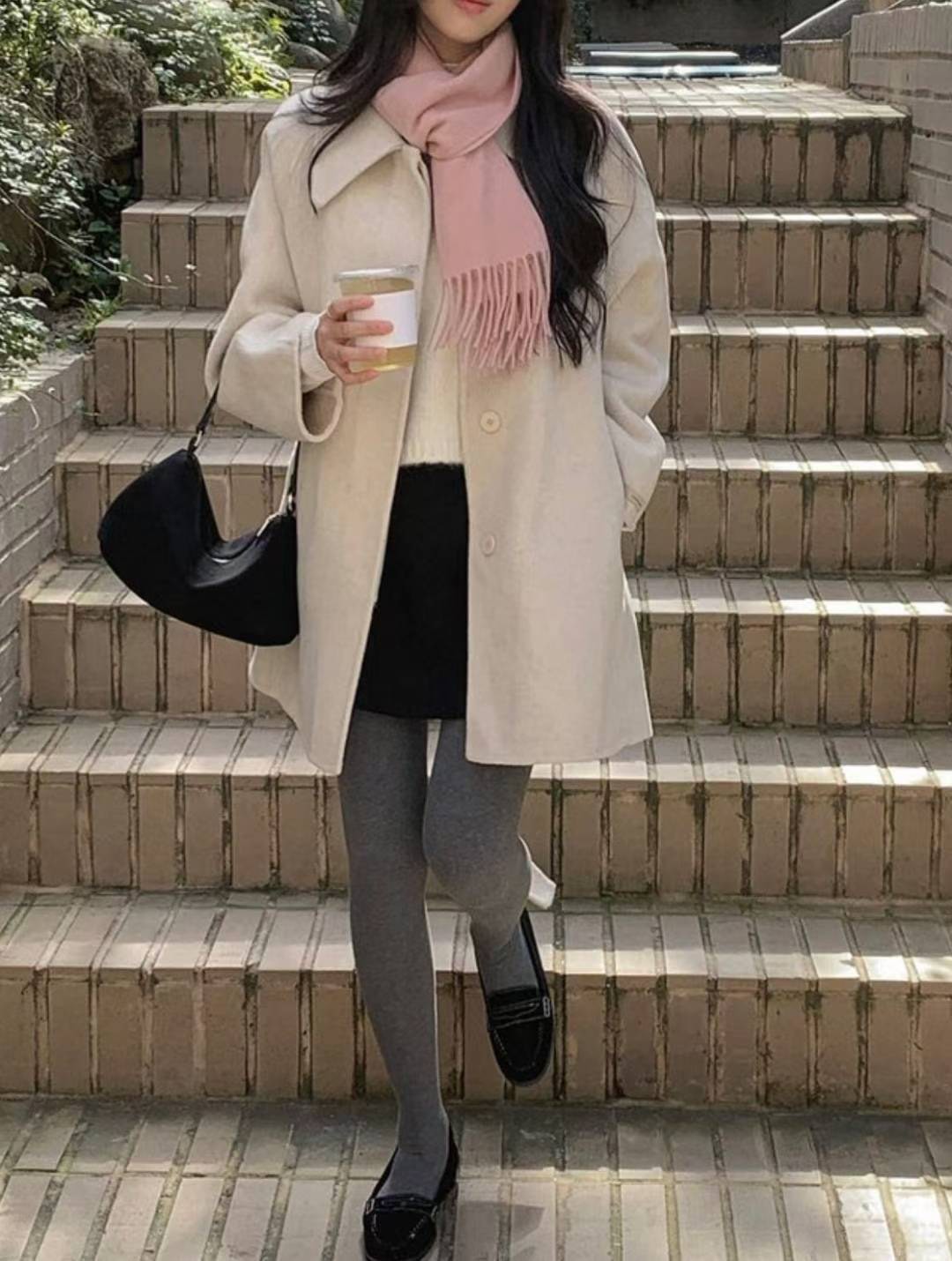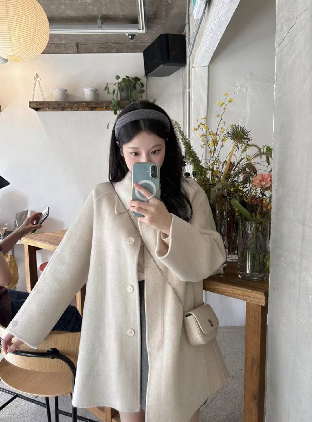 短毛圓領排釦針織衫+鬆緊A字短裙SET