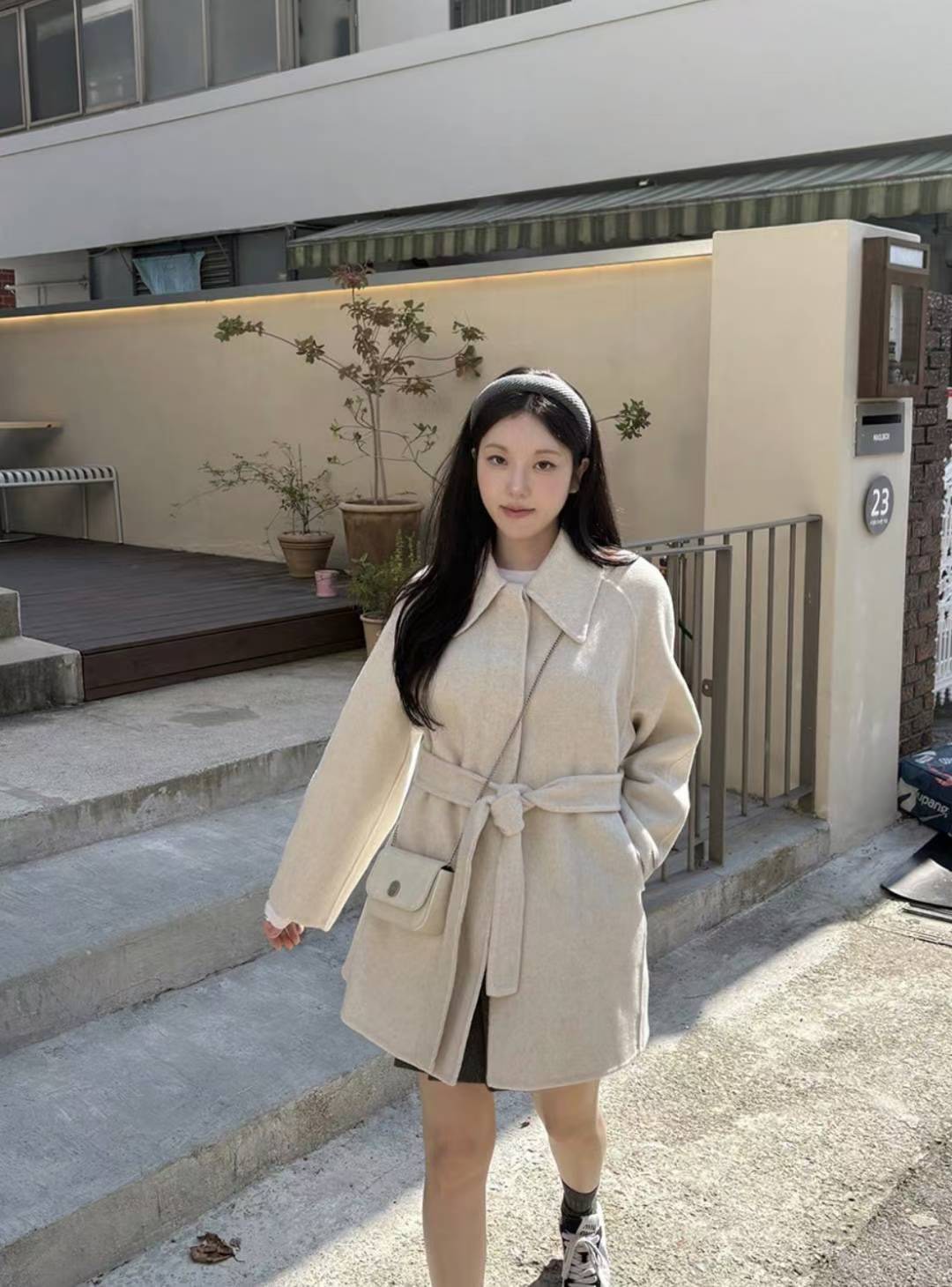 側抽繩薄款寬鬆羊毛針織衣(5%)