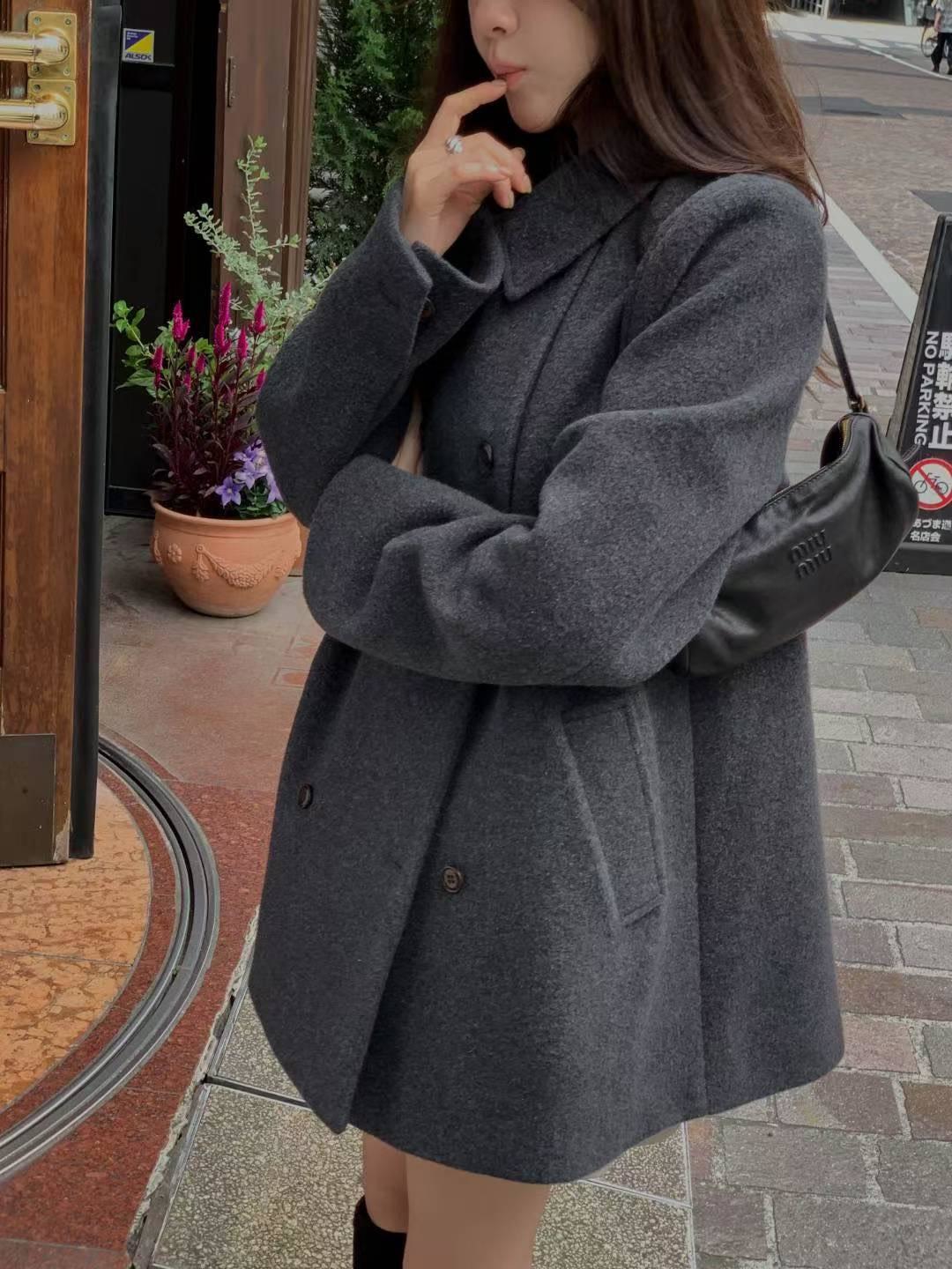 側拉鍊開衩西裝短褲裙(灰M現貨)
