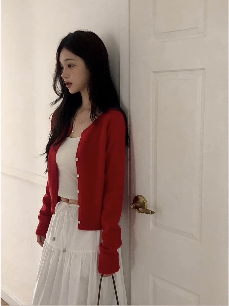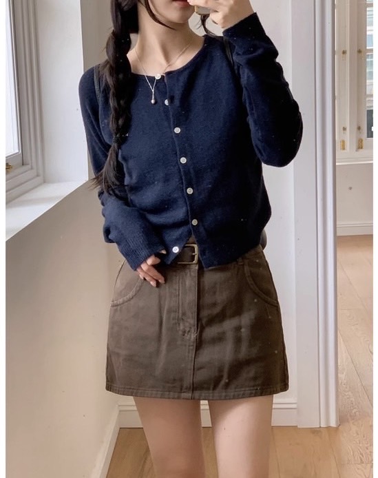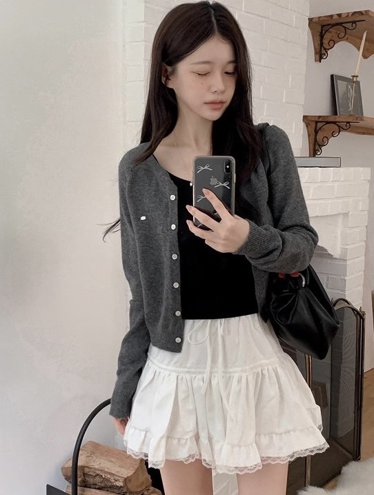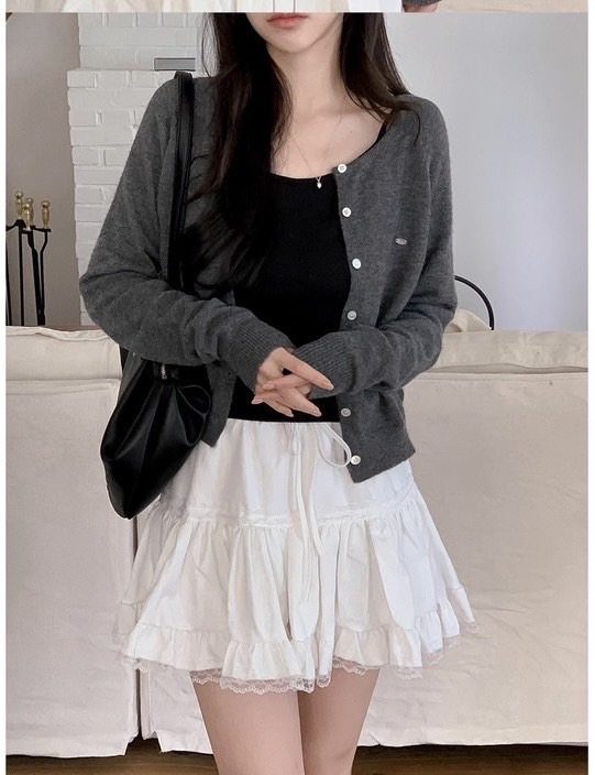 可拆式拼接襯領針織衣+鬆緊短裙SET