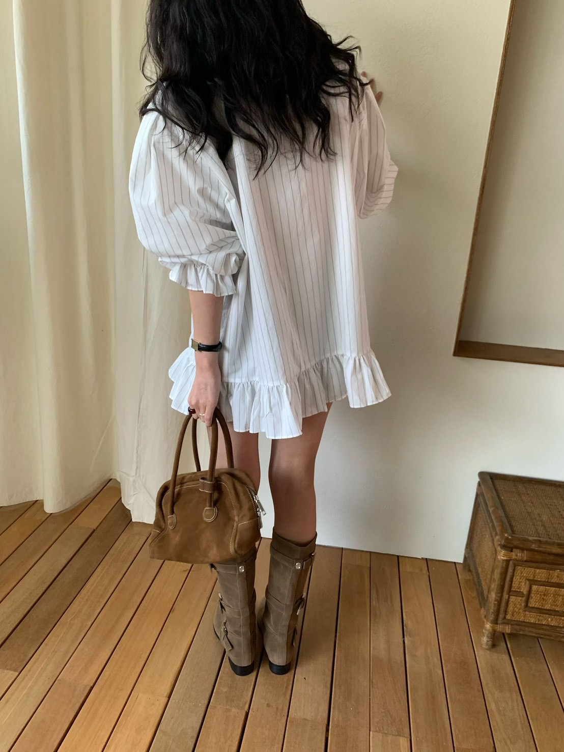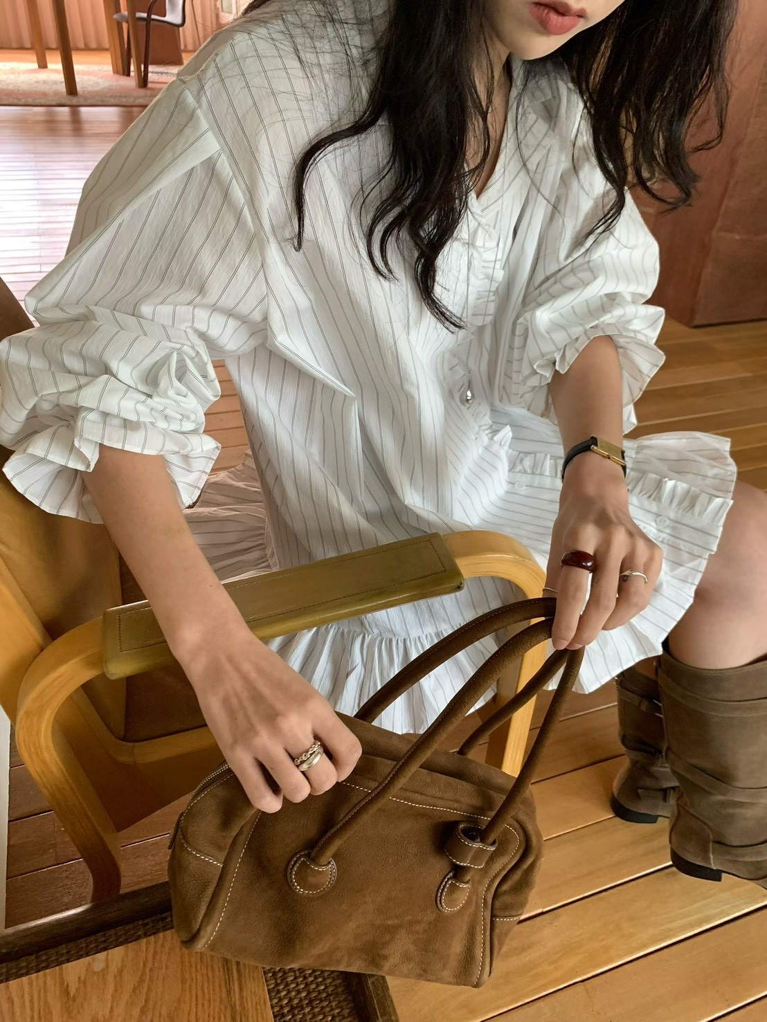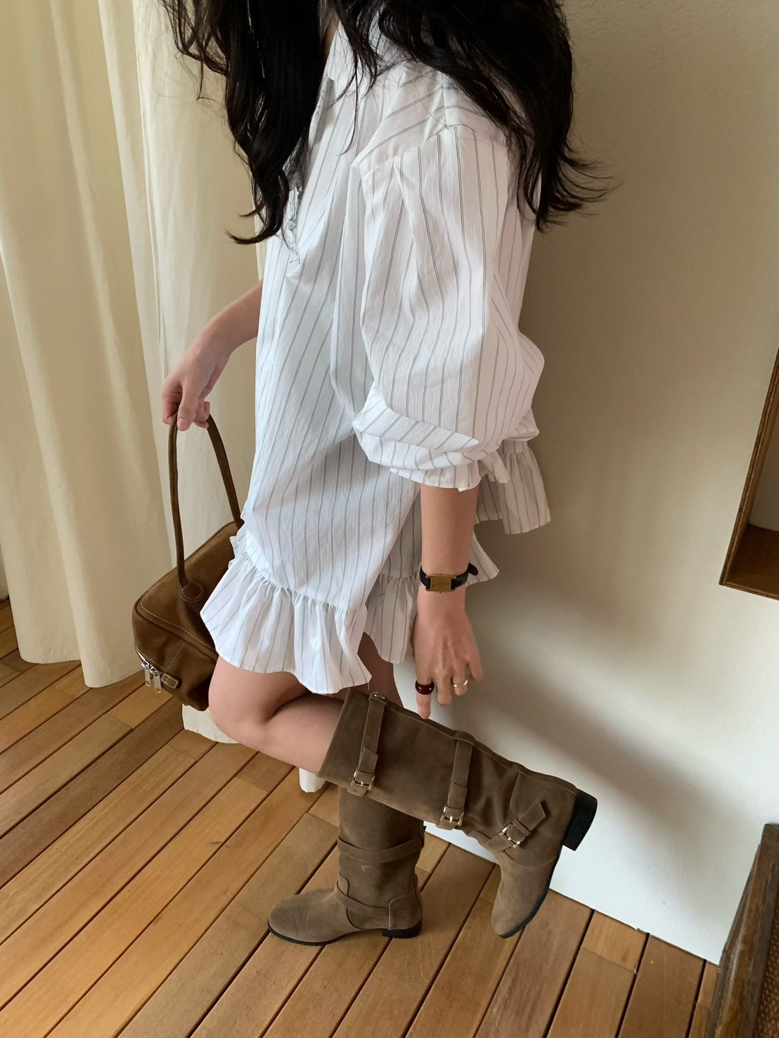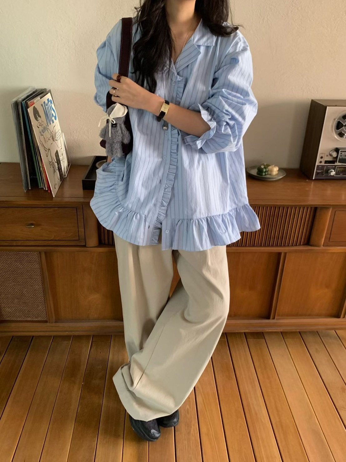 (客訂勿下單)公主袖直條紋荷葉下擺襯衫