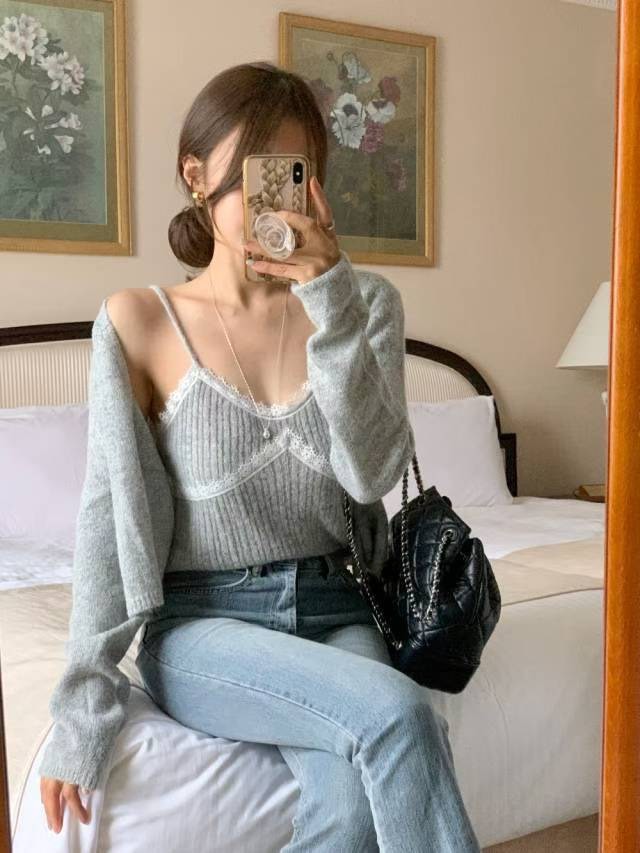 (客訂勿下單)蕾絲滾邊背心+開襟罩衫SET