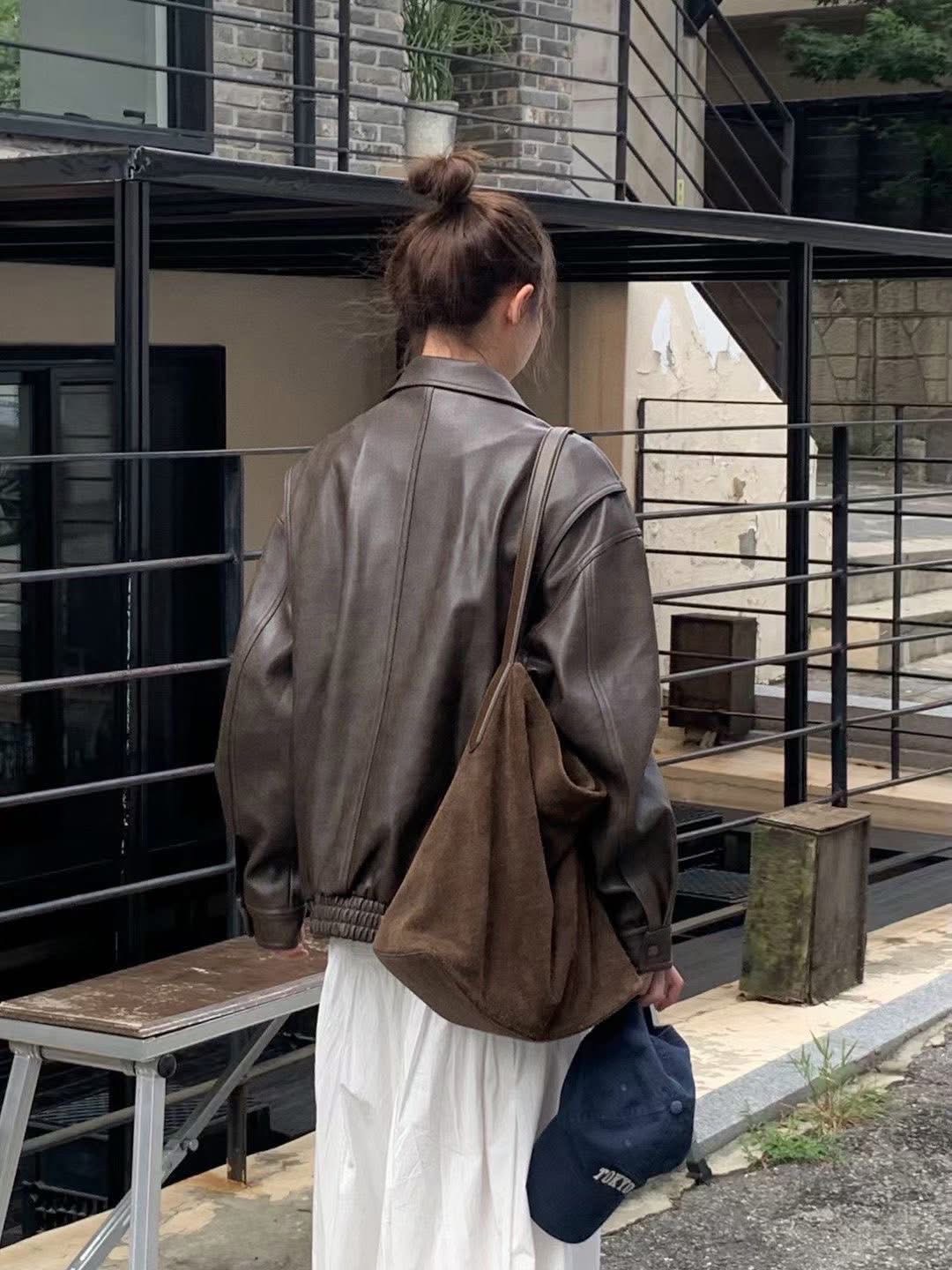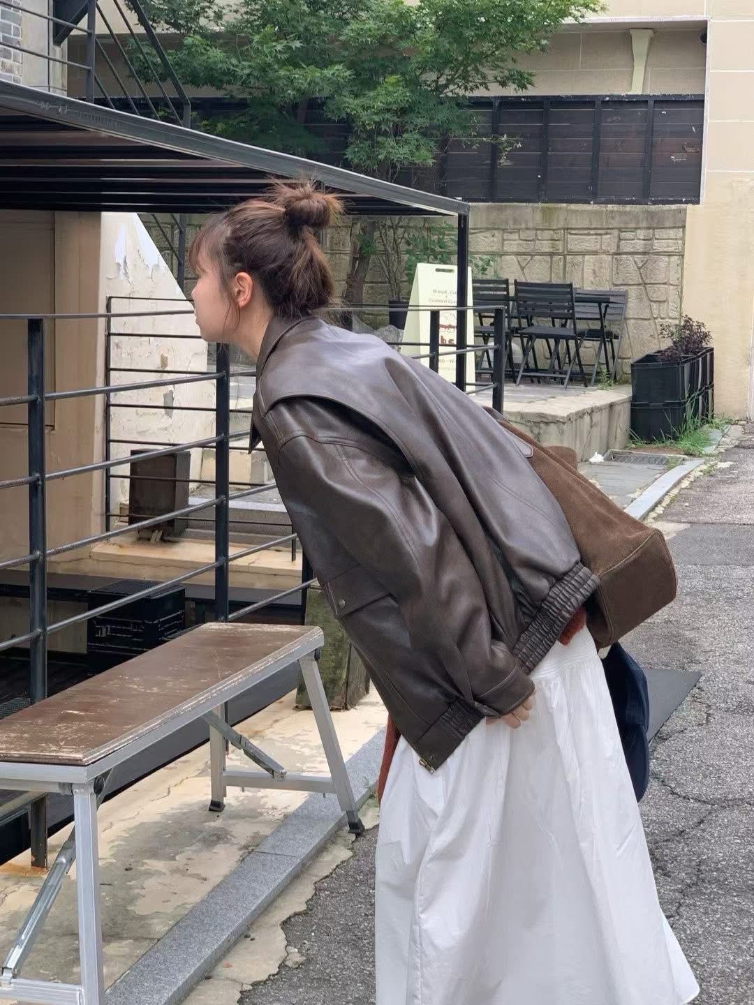 微霧面紋路復古皮革外套