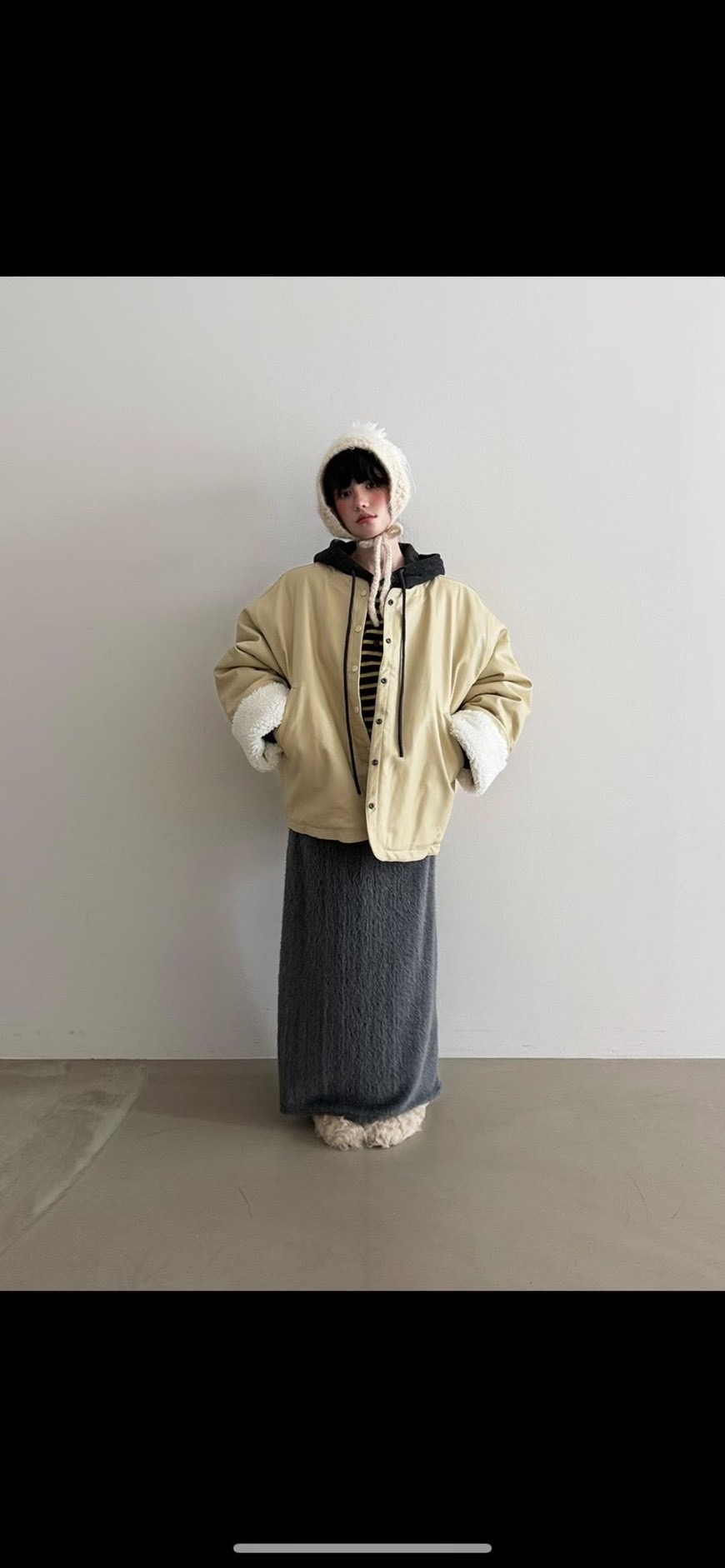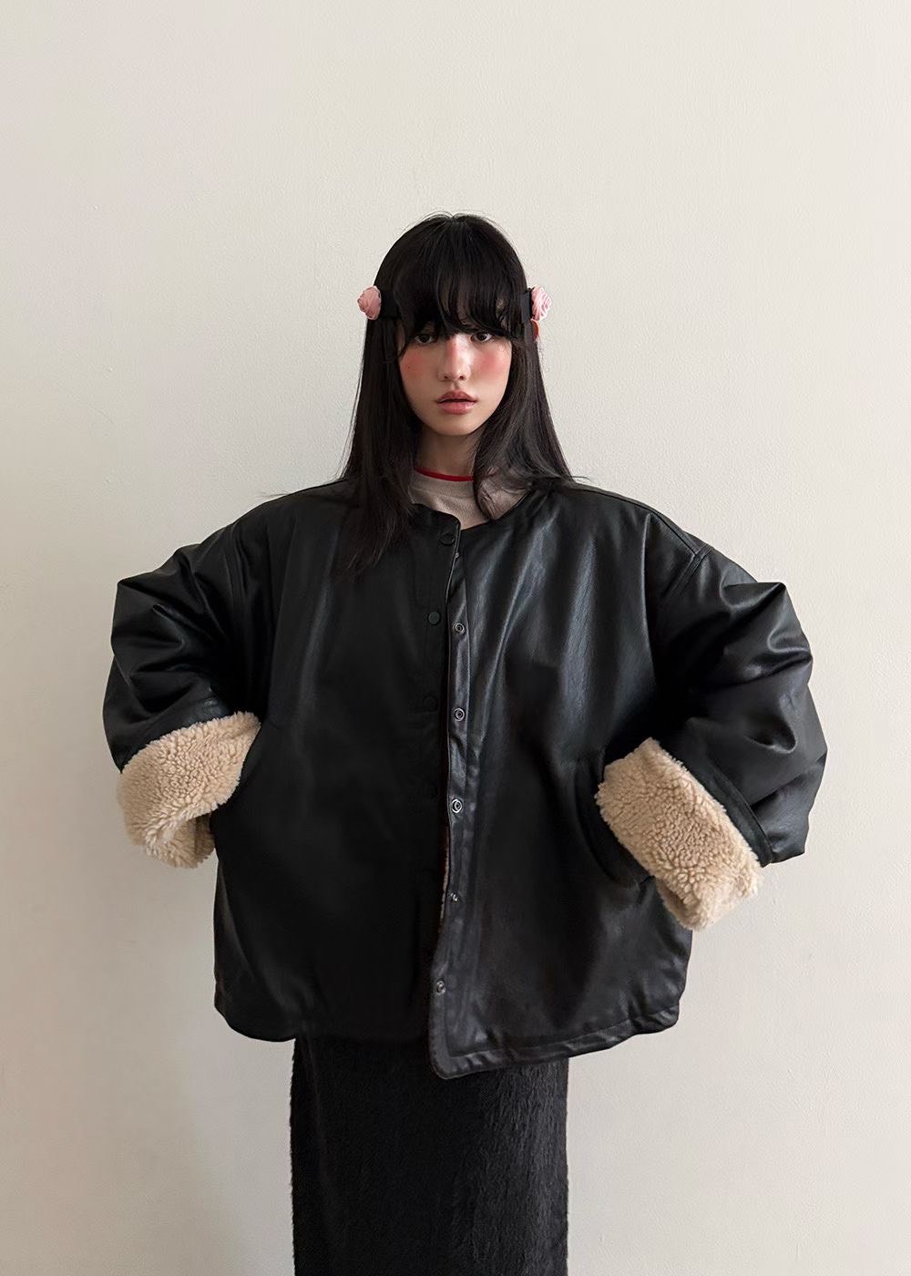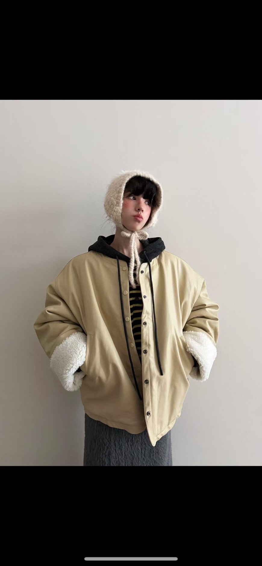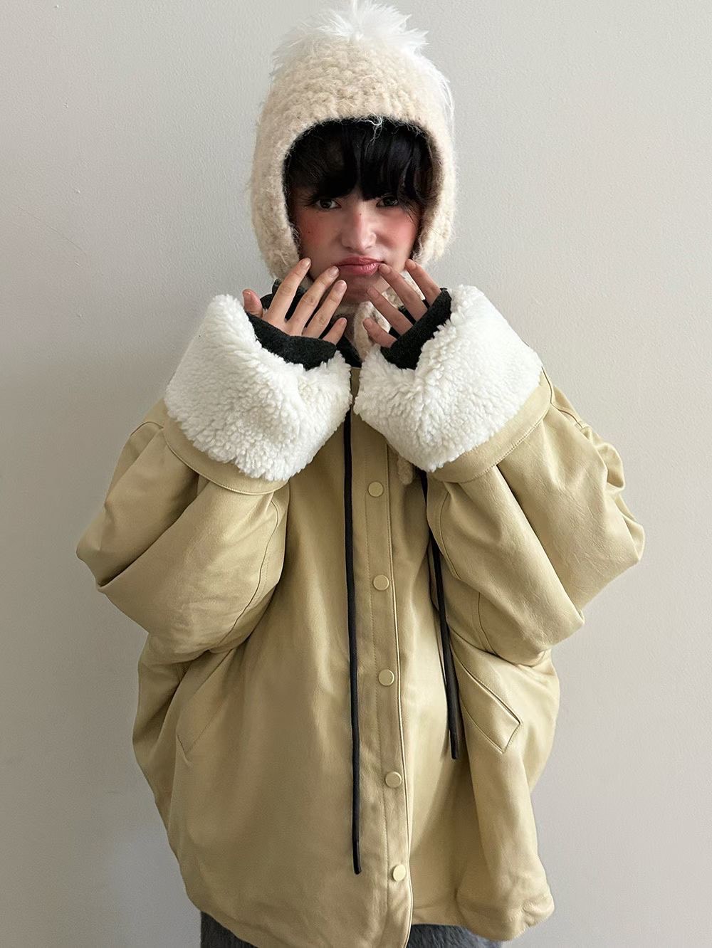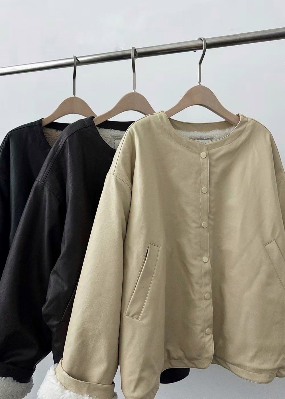 內刷40%羊毛圓領寬鬆外套