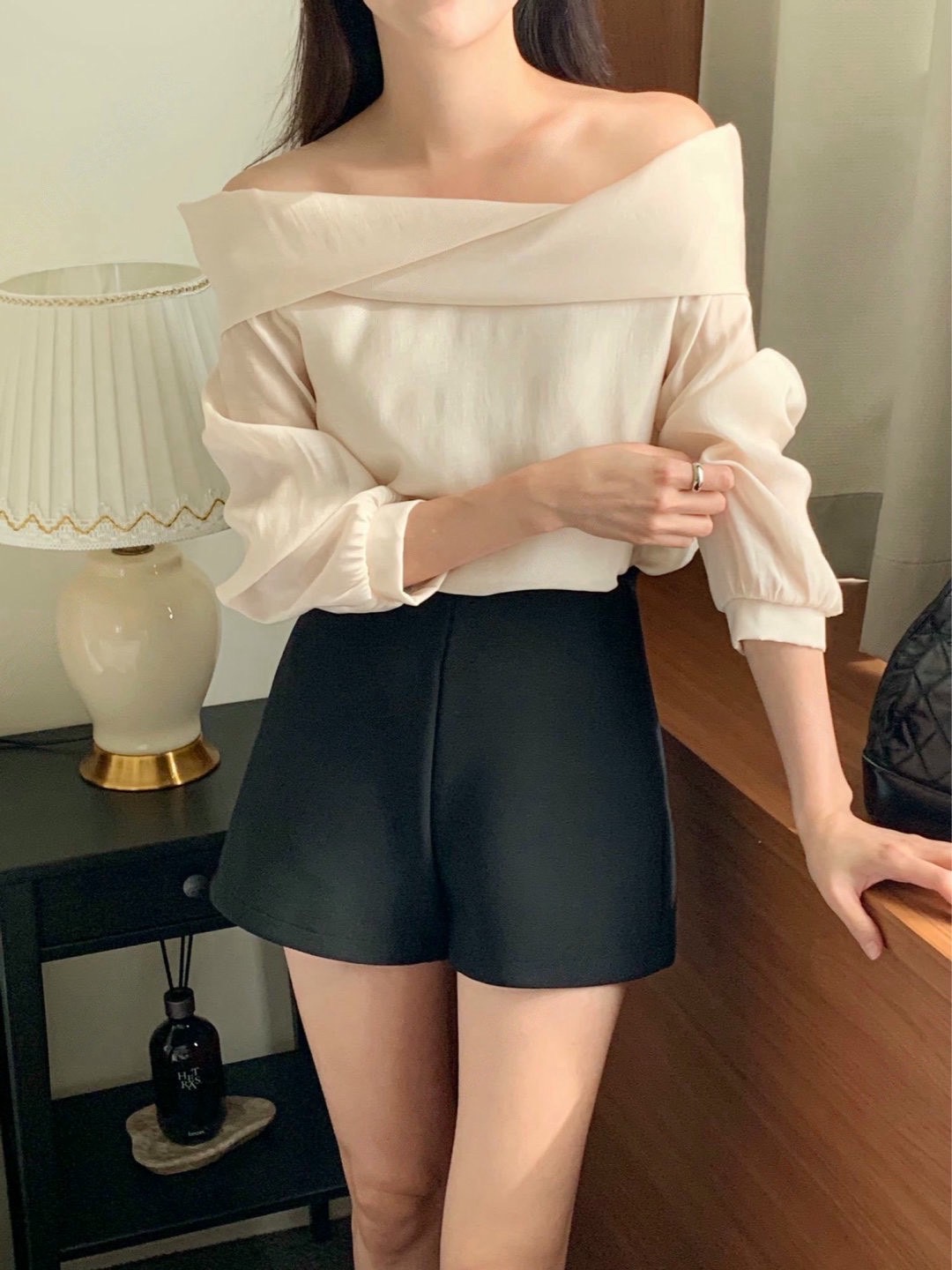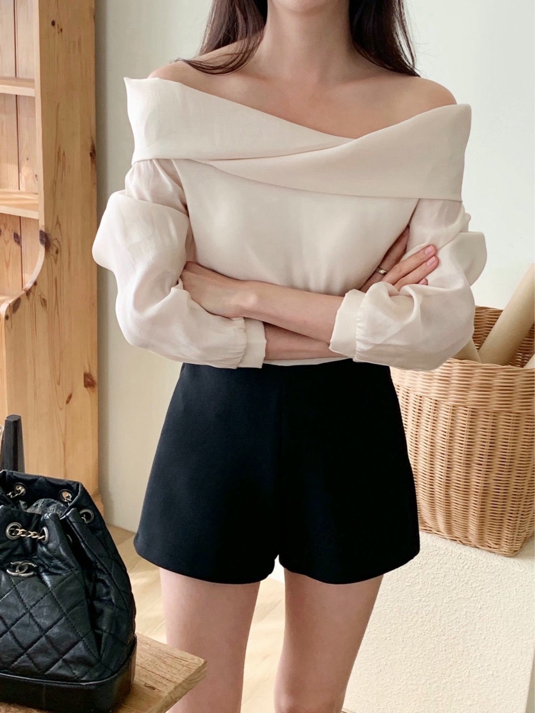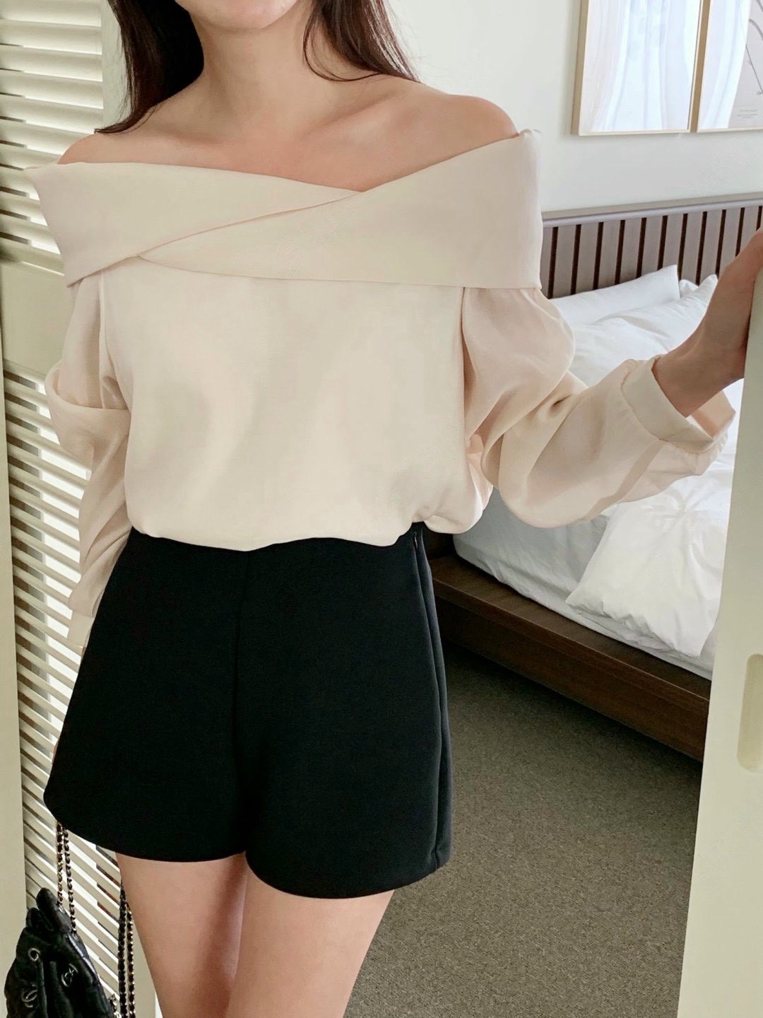 交叉翻領雪紡衫