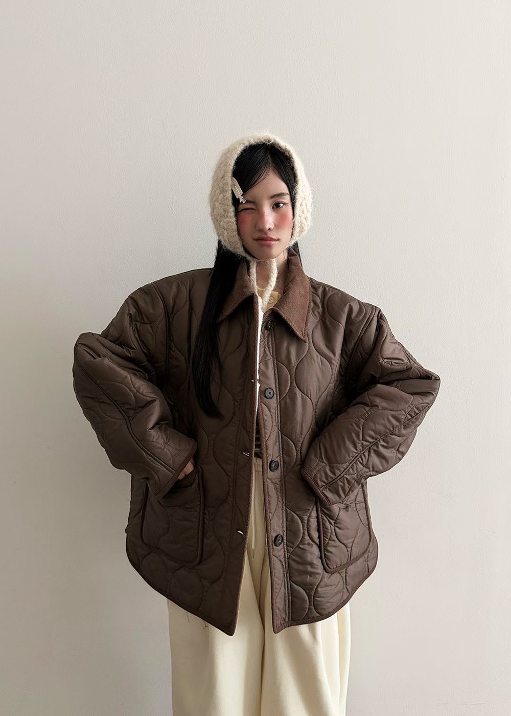 (客訂勿下單)復古翻領壓摺寬鬆外套