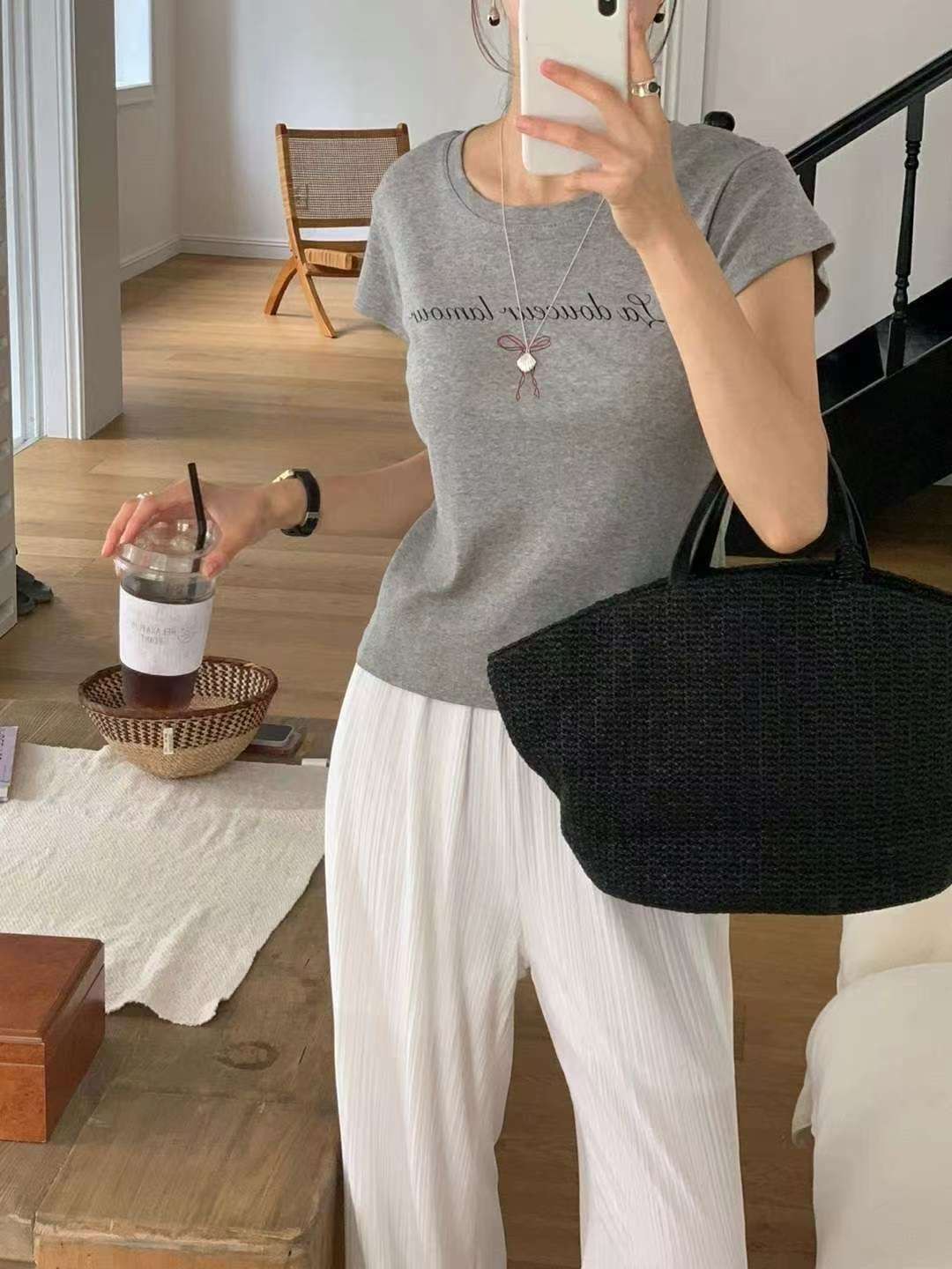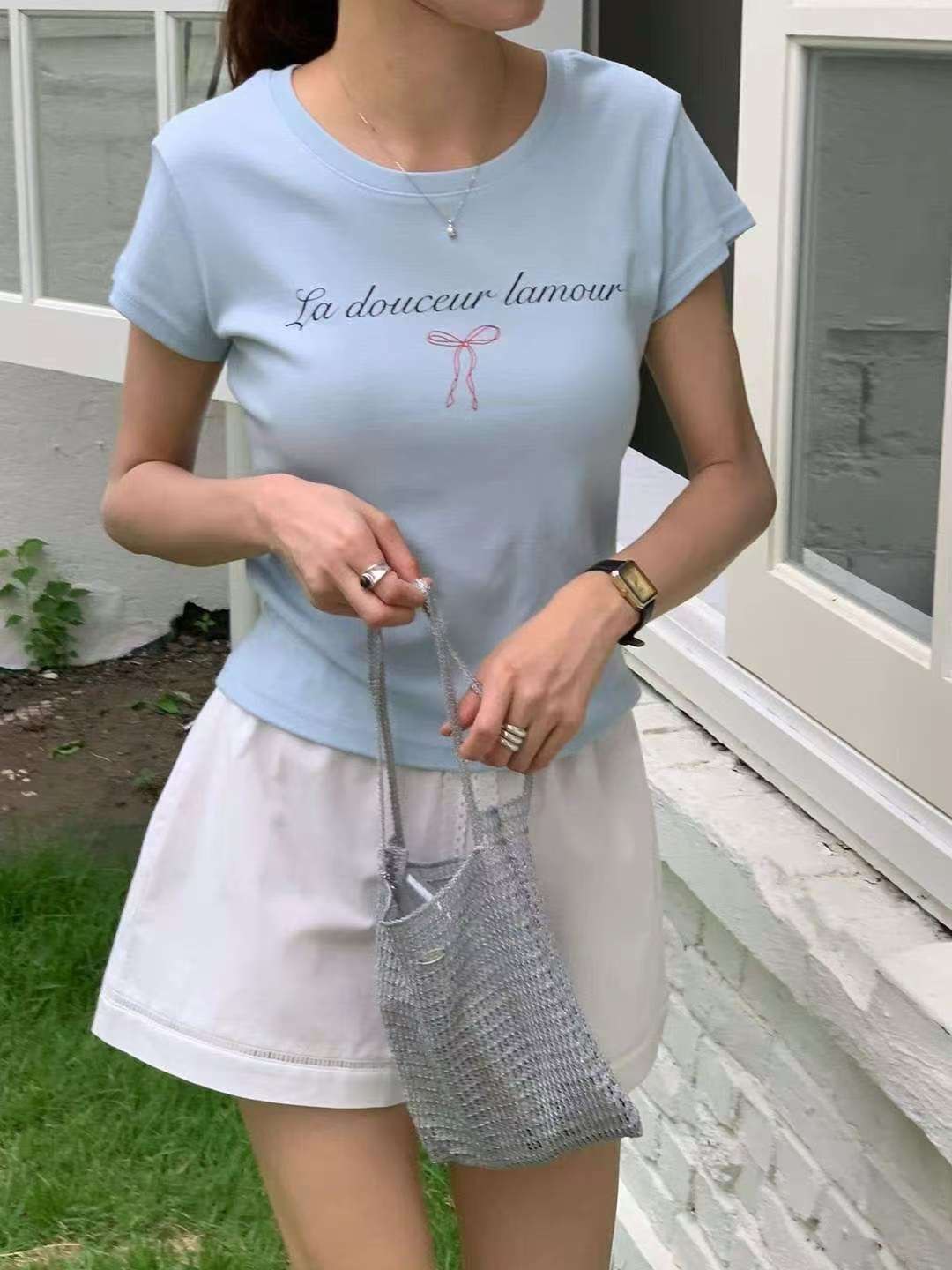 areing家草寫印字蝴蝶結短袖T