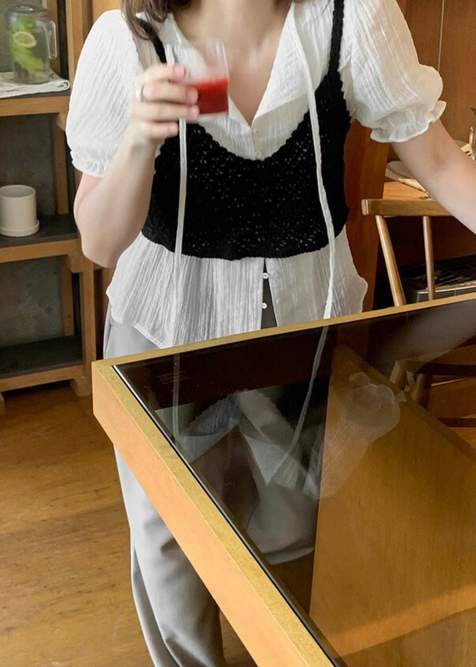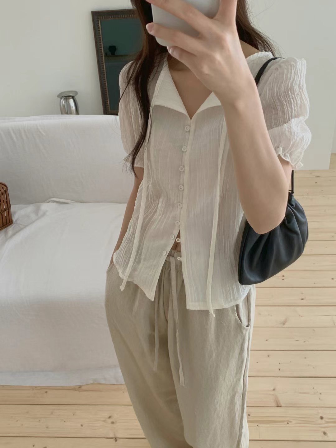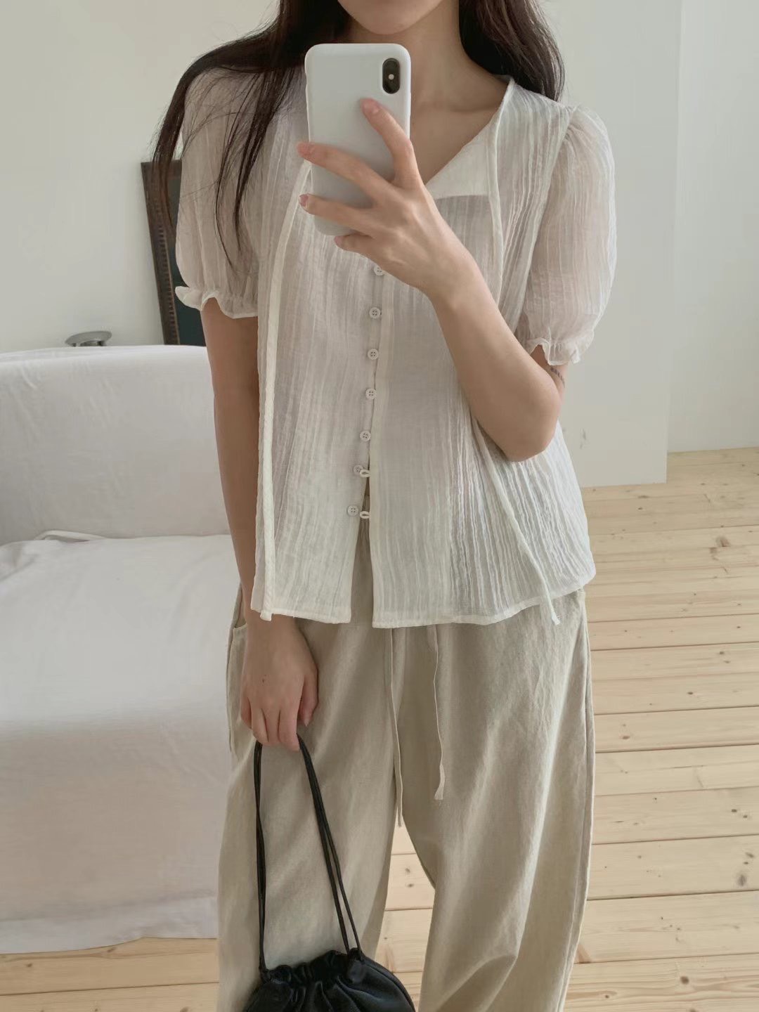 落肩寬鬆橫紋鏤空微透薄針織衫
