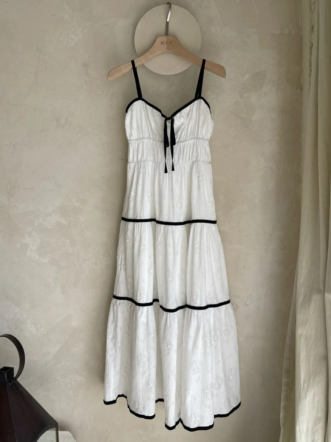 氣質背心+雙層配色長裙SET(黑S現貨一套)