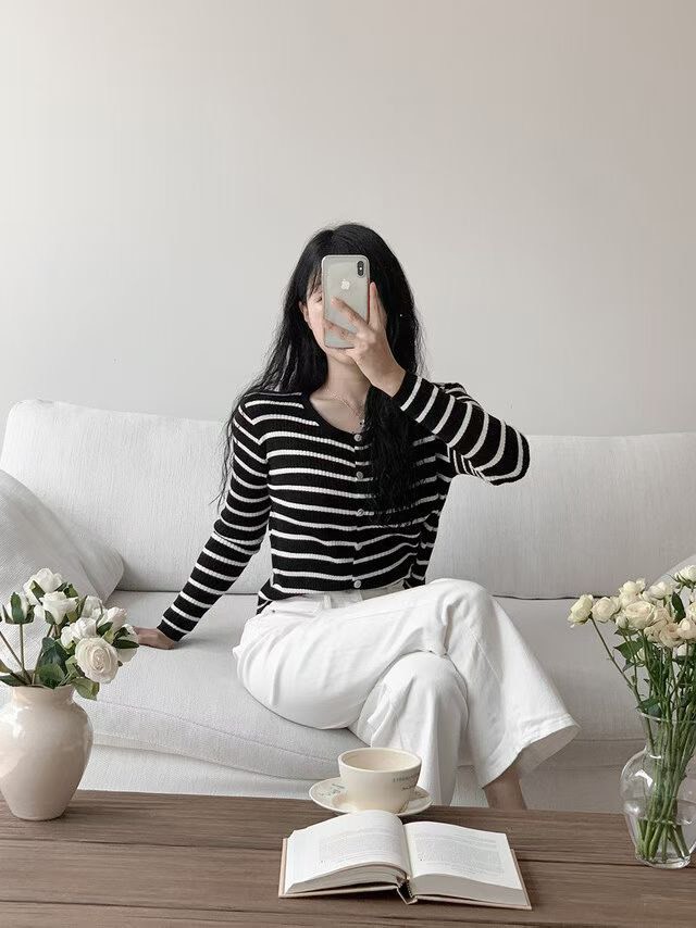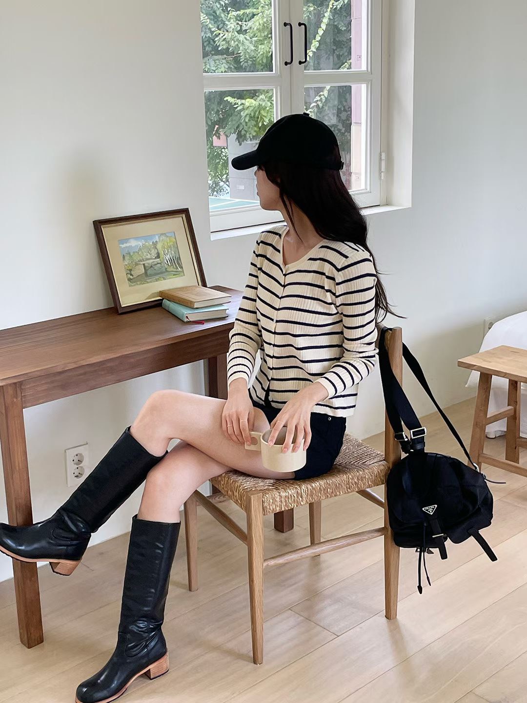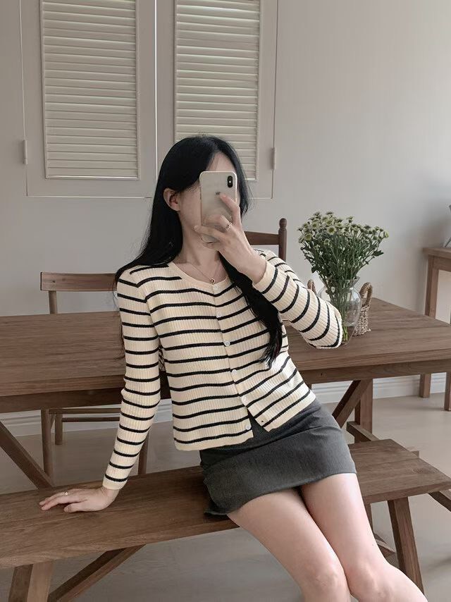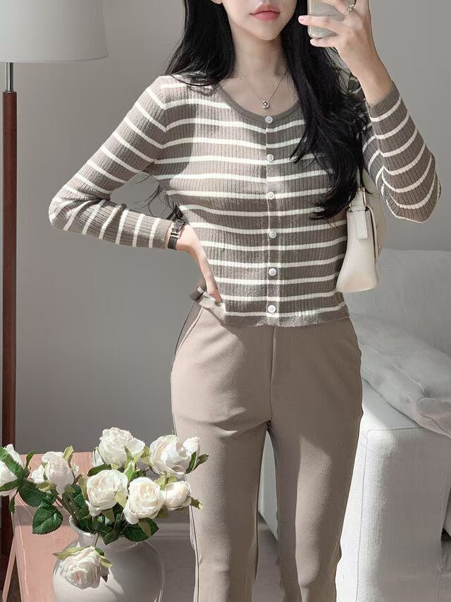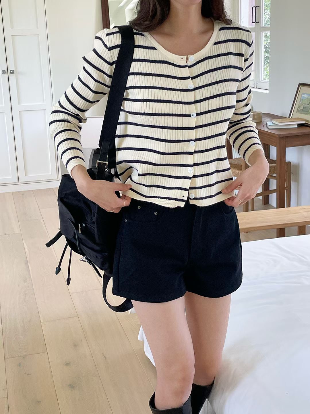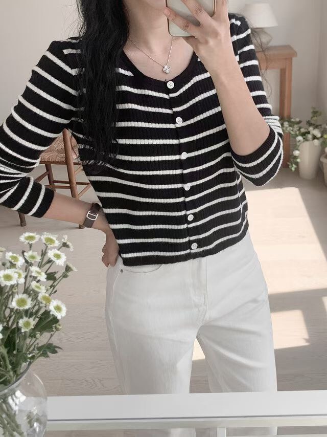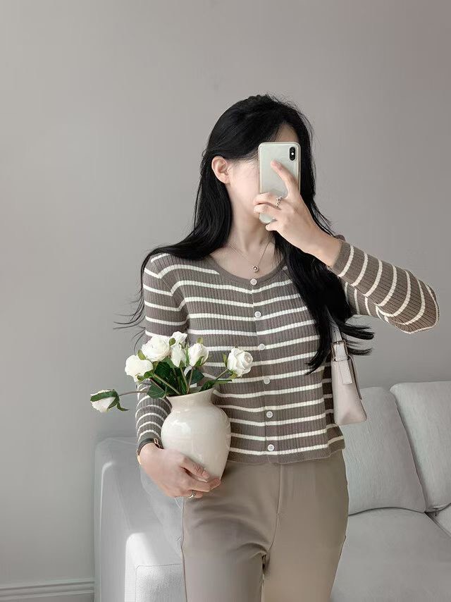 (客訂勿下單)圓領排釦細坑紋薄針織衫