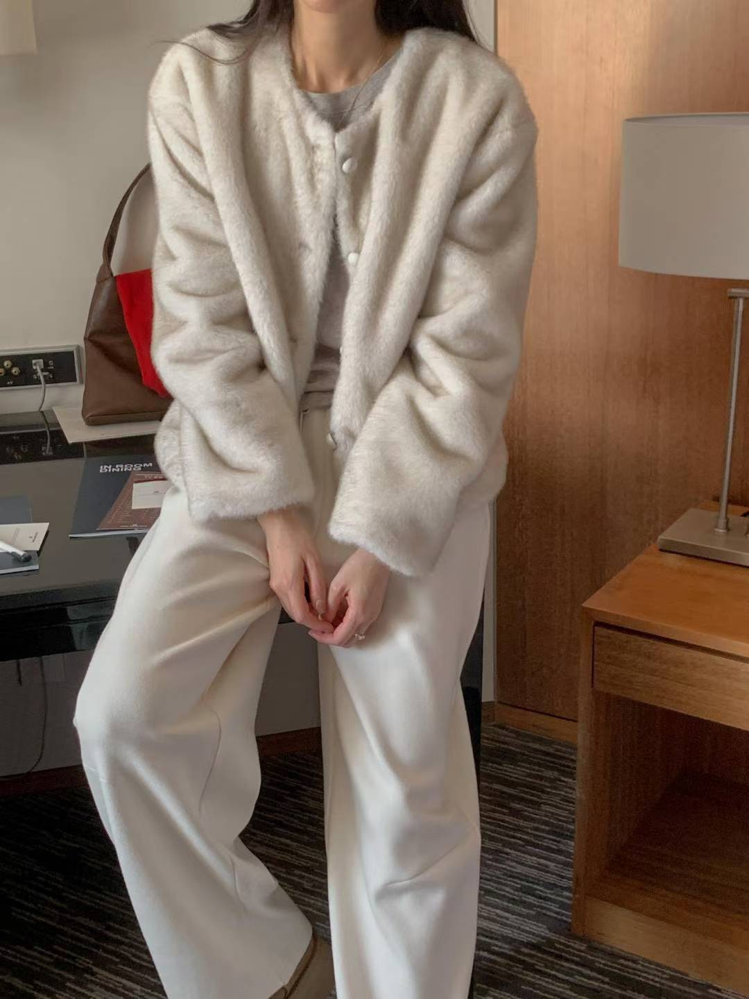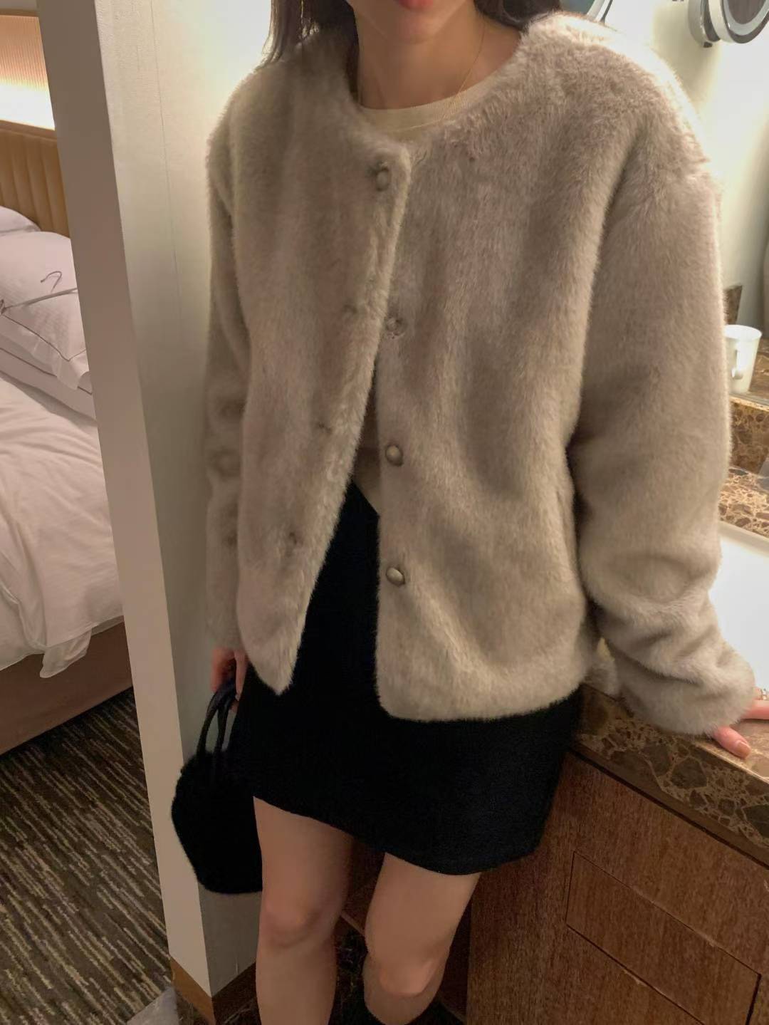 (客訂勿下單)圓領水貂毛排釦外套