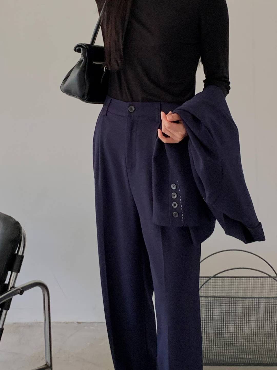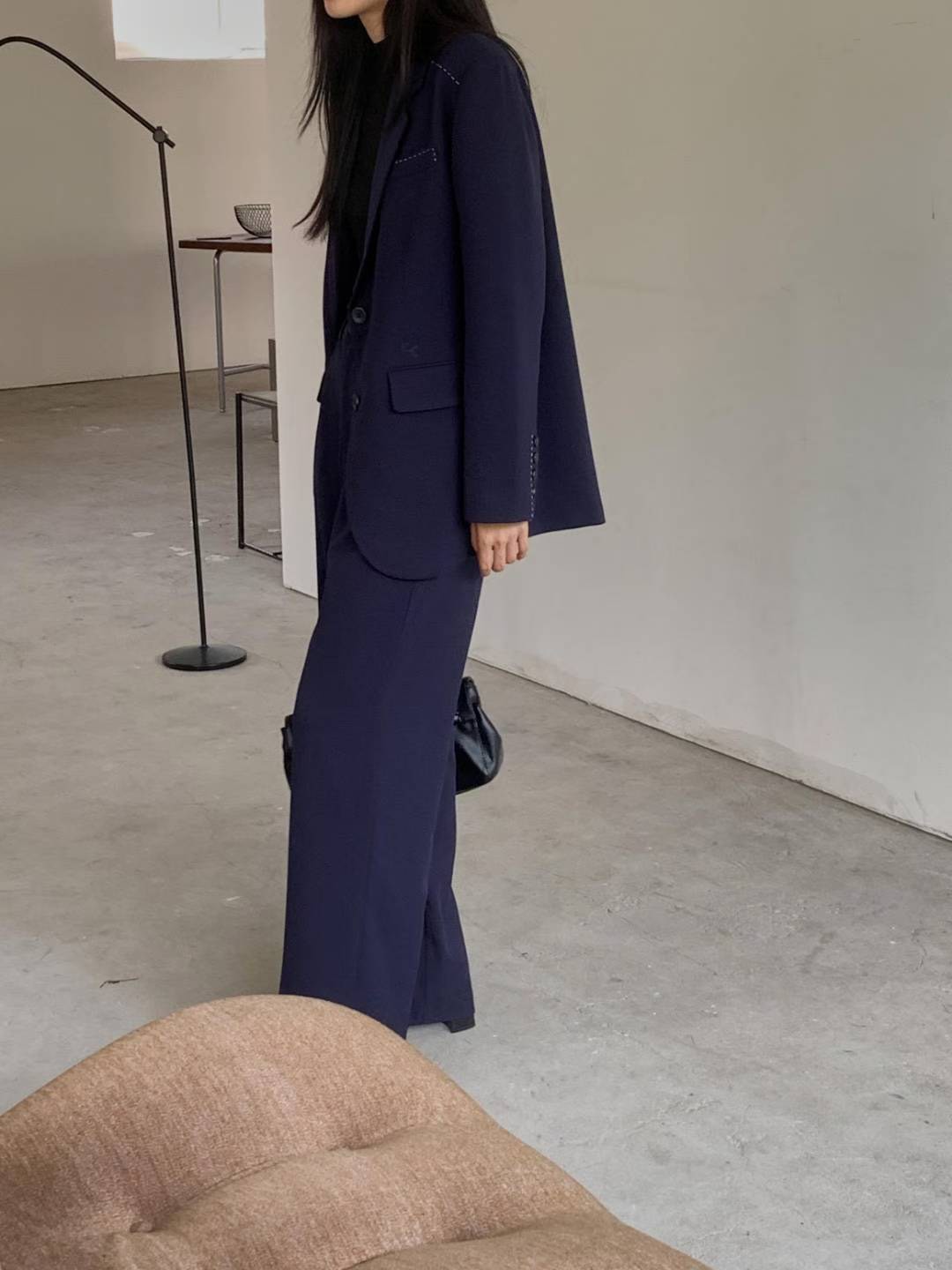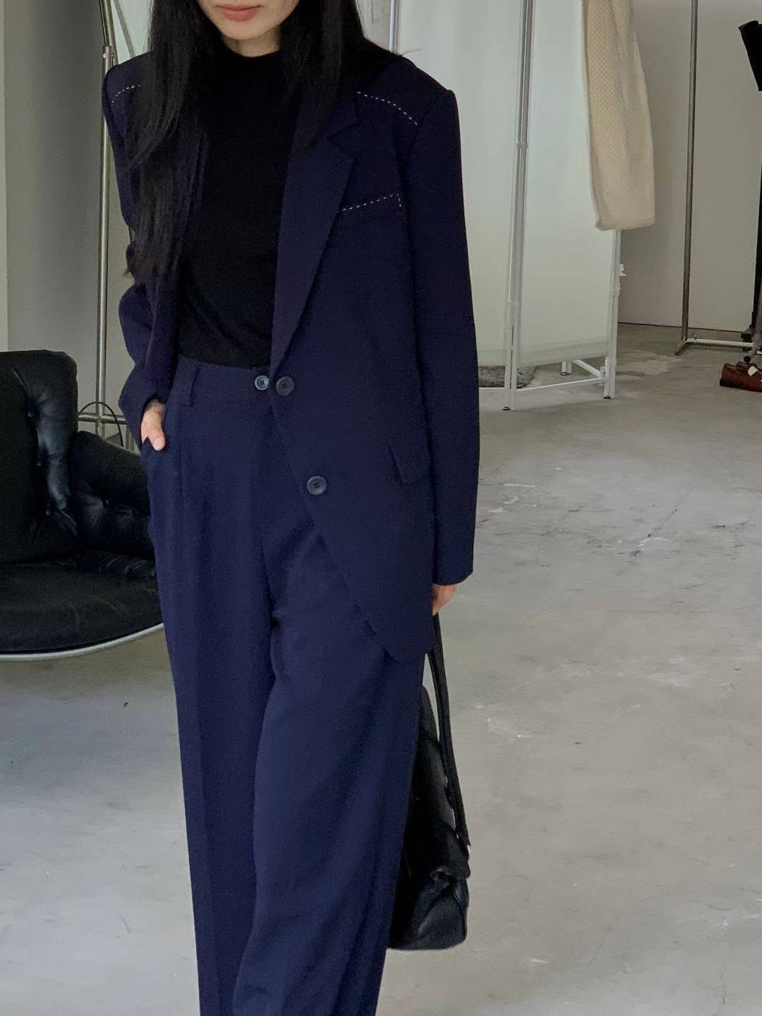 虛線滾邊墊肩西外+單釦落地西褲SET(可拆買)