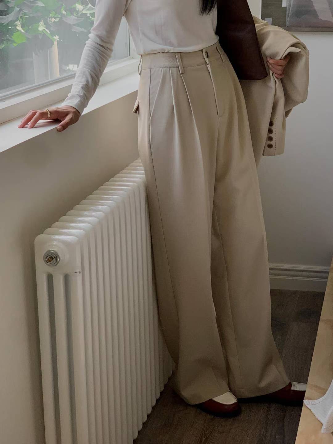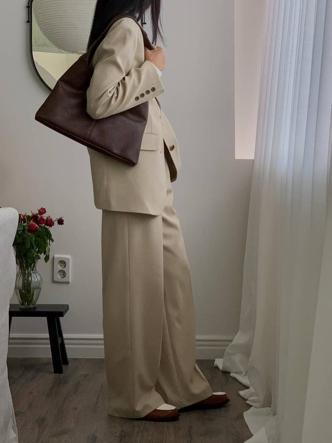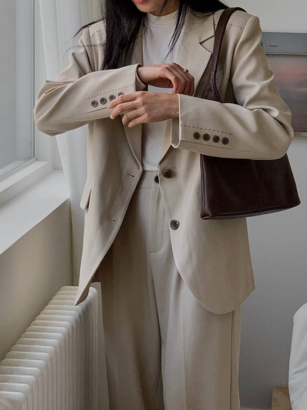 虛線滾邊墊肩西外+單釦落地西褲SET(可拆買)