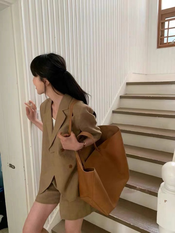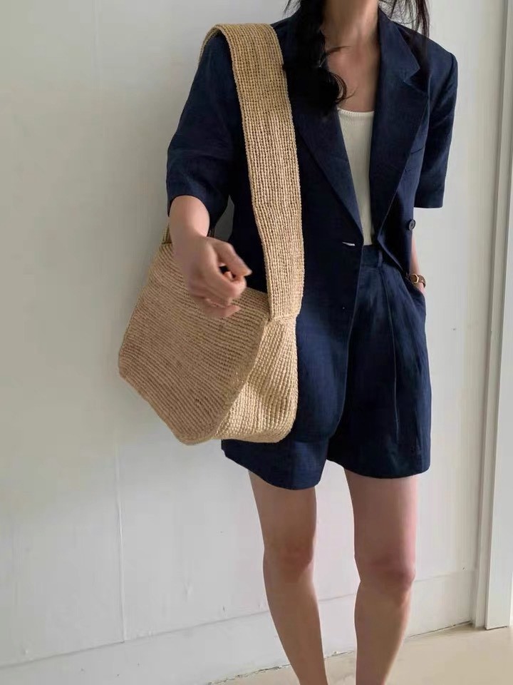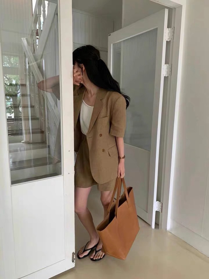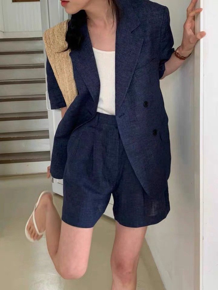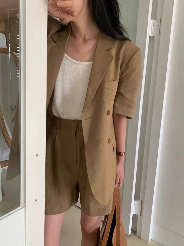 (客訂勿下單)墊肩棉麻短袖西外+隱藏褲頭短褲SET